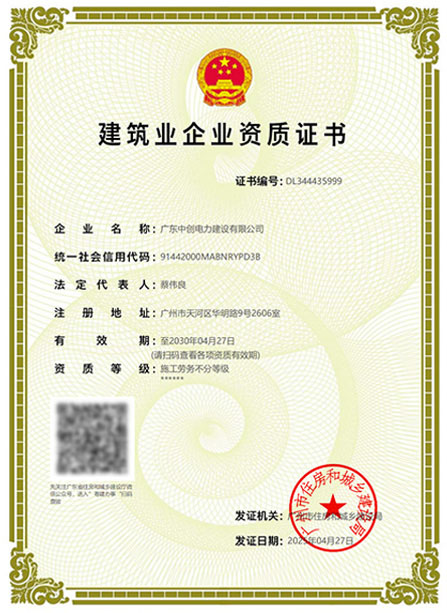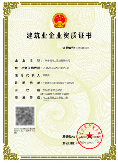 电力工程施工总承包二级承装(修、试)电力设施四级安全生产许可证建筑施工劳务许可证